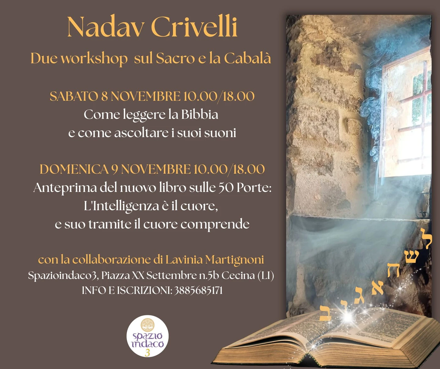Nadav Hadar guida il seminario. L’astrologa e terapeuta olistica Federica Biffi sarà con noi, ad aiutarci nei momenti di stasi o di accelerazione improvvisa, trovando come immettere le energie riconcilianti.